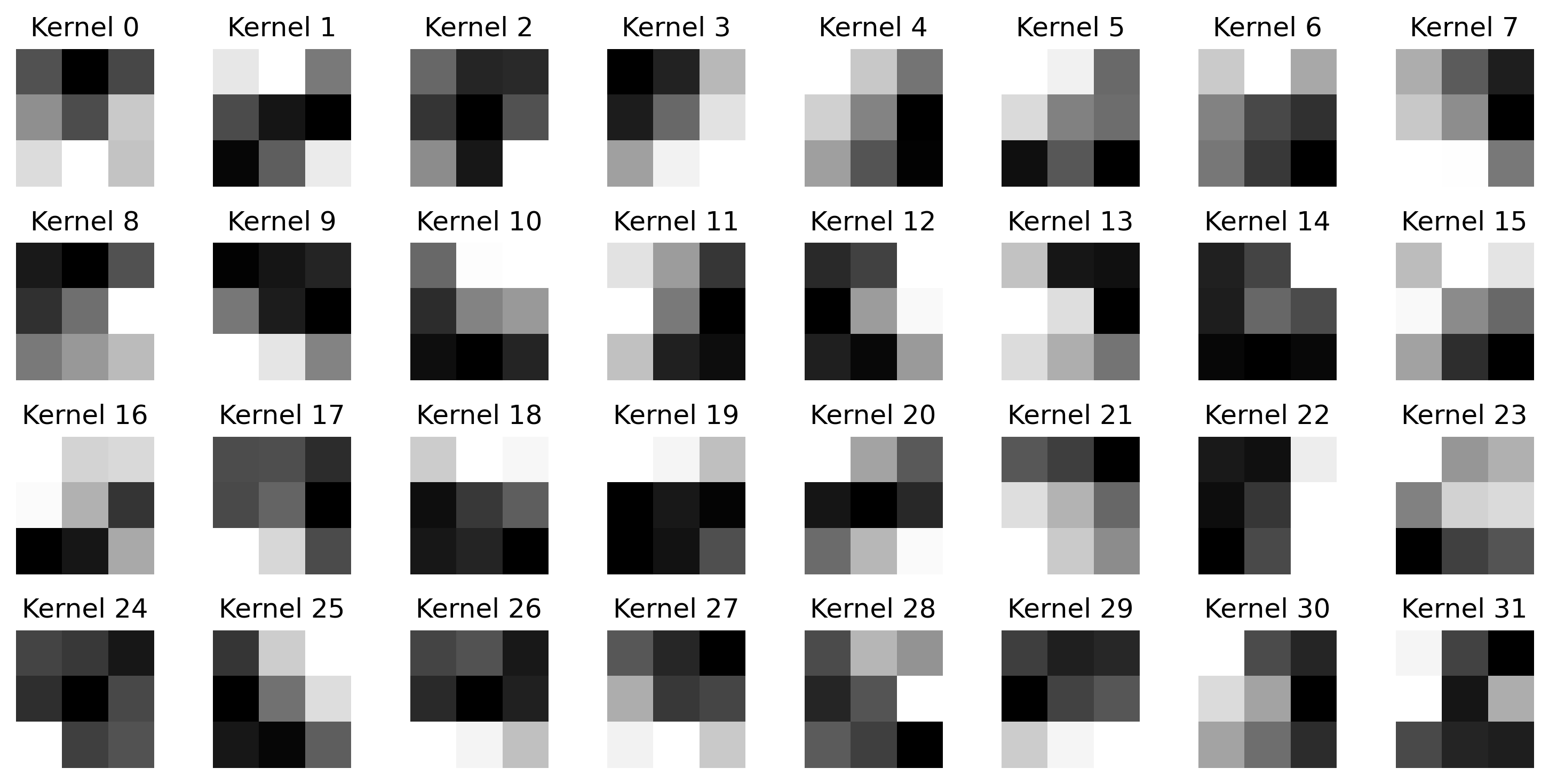 # Visualize the 32 kernels from the first convolutional layer